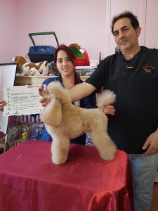 Recientemente he tenido la oportunidad de recibir clases de dos increíbles peluqueros con reconocimiento internacional. El maestro Ricardo Jontari, criador de caniches, handler y peluquero canino con más de 20 años de experiencia y numerosos premios nacionales e internacionales. Y el gran Di Sousa, joven peluquero, pero de dilatada experiencia, cuenta con premios de gran prestigio nacional e internacional.