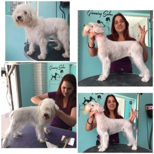 Con el maestro Di Sousa y las compañeras Danielle Bronca y EstherTrabajo en schnauzer realizado en la clase con el peluquero Di Sousa