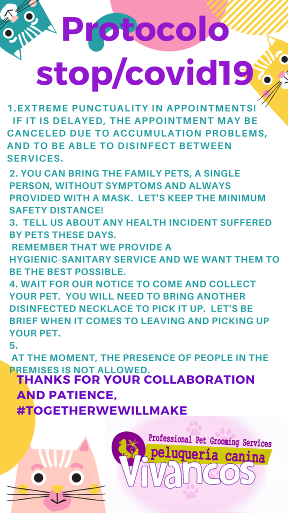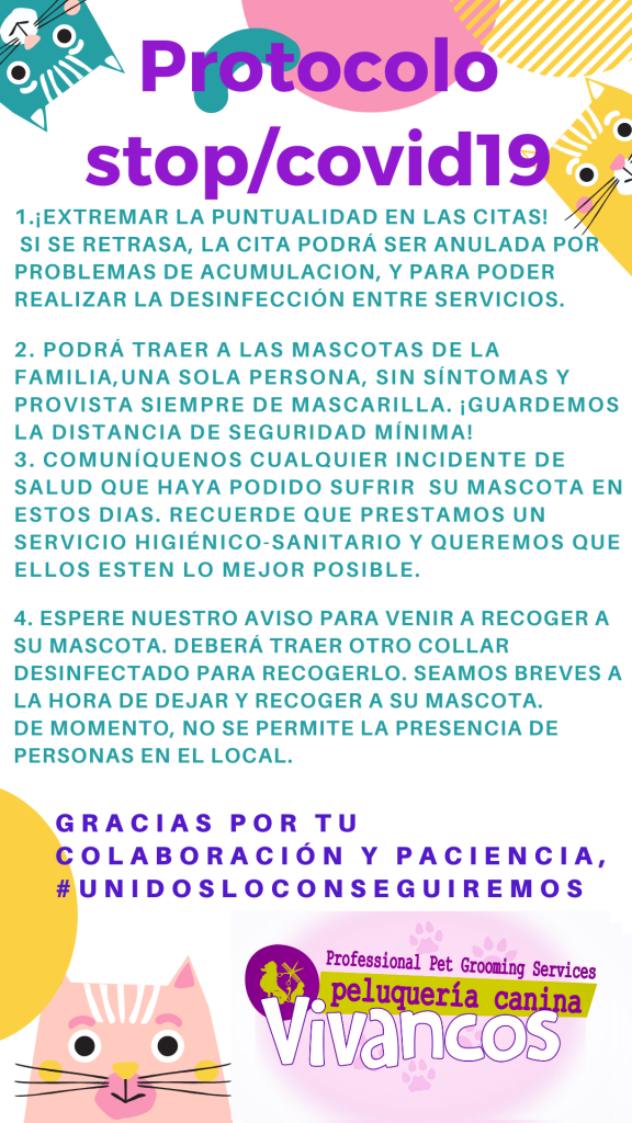 Afrontamos la reapertura, aún en la dura crisis del Covid19, con mucha precaución, Nuevo Horario y nuevas medidas más extremas y relativas a luchar contra la pandemia. ¡Con mucha ilusión por ver de nuevo a mis pequeños! A espera de que se publique en el BOE mañana, según todas las informaciones oficiales que hemos podido recopilar, estamos,preparando todo para la REAPERTURAde nuestras puertas el jueves, día 7. Llevamos dos días llamando a las personas de la lista de espera, y nuestra AGENDA está repleta hasta el 20 de Mayo. Este año, más que nunca, os ruego previsión. Muchas gracias a tod@s por este aluvión de cariño y confianza!! Tengo los mejores clientes del mundo ❤️🌹🐶 Nota: Recomendamos los lavados con agua ozonizada para una limpieza más profunda y ayudar a la regeneración de la piel después de tanto tiempo sin cuidar adecuadamente. 💦🔝