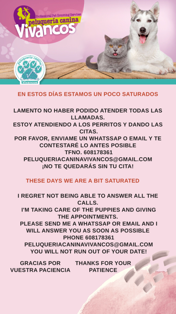 We face the reopening, even in the severe crisis of Covid19, with great caution, New Hours and new more extreme measures related to fighting the pandemic. Looking forward to seeing my little ones again! Waiting for it to be published in the BOE tomorrow, according to all the official information that we have been able to gather, we are preparing everything for the REOPENING of our doors on Monday, day 4. We have been calling the people on the waiting list for two days, and our AGENDA is full until May 20. This year, more than ever, I beg you for foresight. Thank you very much everyone for this flood of love and trust !! I have the best clients in the world ❤️🌹🐶 Note: We recommend washing with ozonated water for a deeper cleaning and to help the regeneration of the skin after so long without proper care.💦🔝