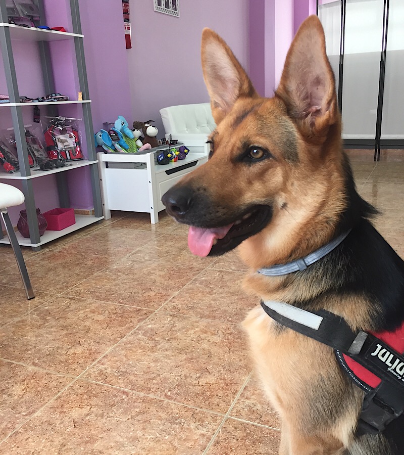 Le encanta venir, sube sola a la bañera y disfruta hasta con el secador. ¿Quién dijo que los perros grandes son difíciles?